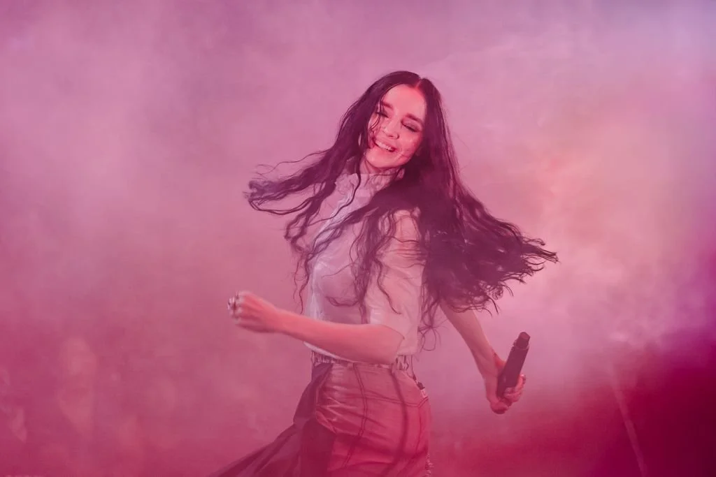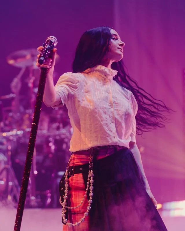 Following a cyber-dystopian intro—Poppy’s disembodied voice delivering a dread and existential crisis-inducing monologue—she made her way to the stage in a white, Victorian-style blouse with a knee-length skort. Paired with her waist-length black hair, she looked like the Bella Baxter of rock as she kicked things off with “Have You Had Enough”, further establishing a dark and angst-riddled tone.