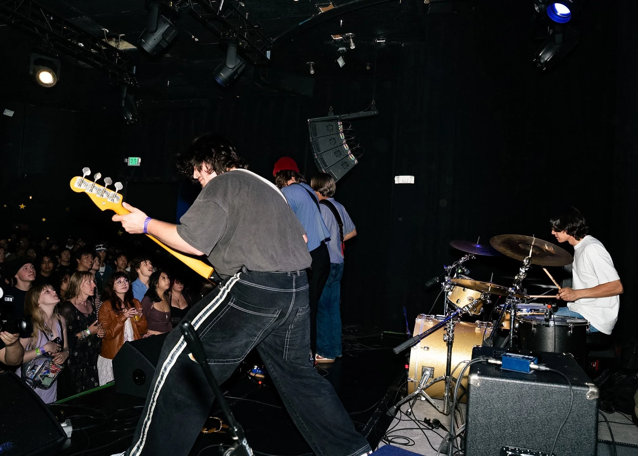 The band—composed of Moses Navarro and Ian East on guitar and vocals, Patrick East on bass, and Kaiawe Miyasato on the drums—secured their slot by winning Flower Moon’s final battle of the bands just two weeks prior. The Lucky Effect’s victory proved to be extremely well earned from the very first note played to the final bow, with the band having no trouble keeping their audience’s attention as they played to a packed room. Everyone was locked in, singing along, jumping, and throwing up peace signs at the band’s request, proving once again that their natural charm, musicianship, charisma, and infectious sound never fails to turn a crowd of strangers into fans. I’ve had the pleasure of watching them perform many times now, and they continue to level up with every performance.